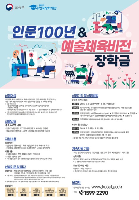 | 제목 | 인문100년, 예술체육비전 장학금 |